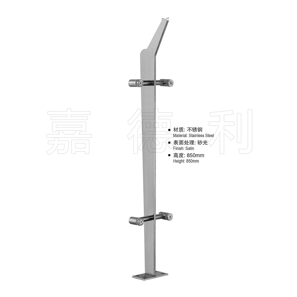 材质多为不锈钢201,304,316广泛应用于楼梯,栏杆,扶栏,扶手的支撑柱,表面一般是磨砂拉丝,或镀金处理。立柱主体板材一般选用6-15MM厚,市场上规格多为高度为850*50MM或1050*50MM,加上玻璃抓手等配件。立柱主体是靠精准切割设备切割出来的,可以切割出各种形状,再钣金加工,玻璃驳接紧固件大都是铸造出来的。