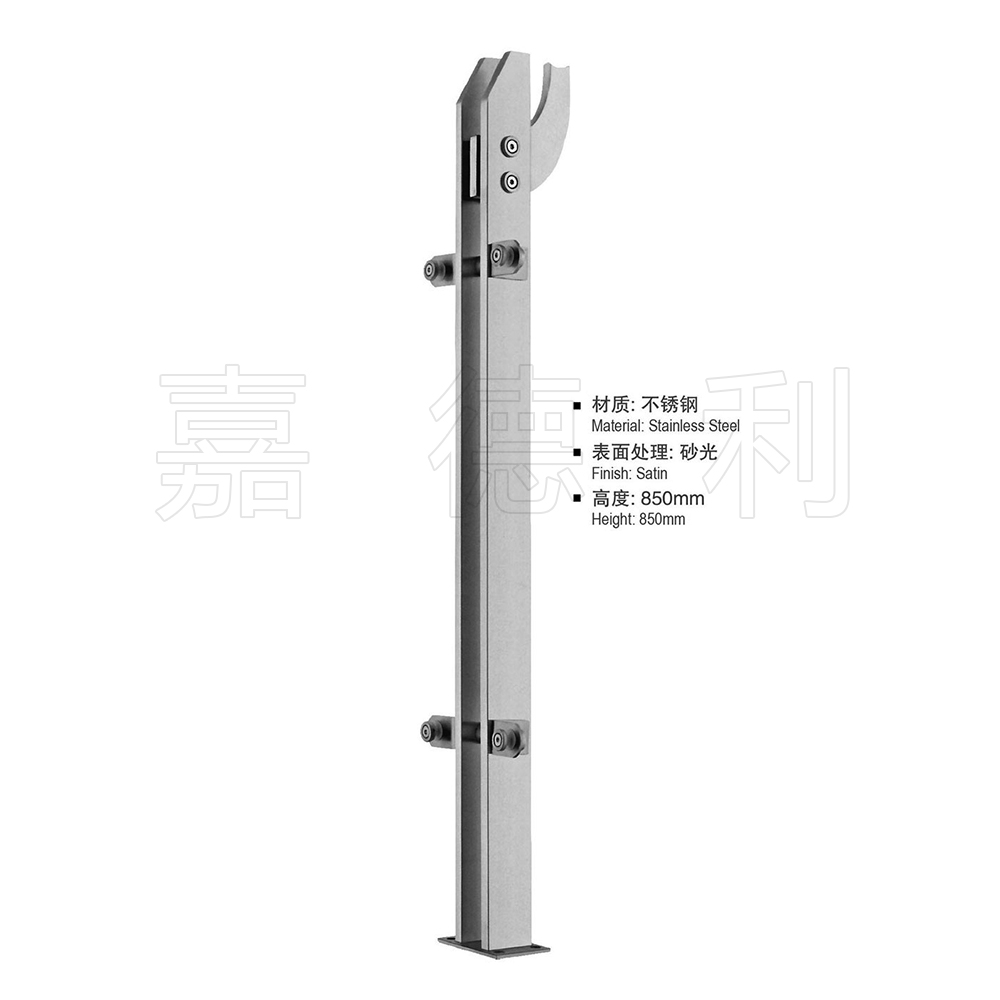 材质多为不锈钢201,304,316广泛应用于楼梯,栏杆,扶栏,扶手的支撑柱,表面一般是磨砂拉丝,或镀金处理。立柱主体板材一般选用6-15MM厚,市场上规格多为高度为850*50MM或1050*50MM,加上玻璃抓手等配件。立柱主体是靠精准切割设备切割出来的,可以切割出各种形状,再钣金加工,玻璃驳接紧固件大都是铸造出来的。