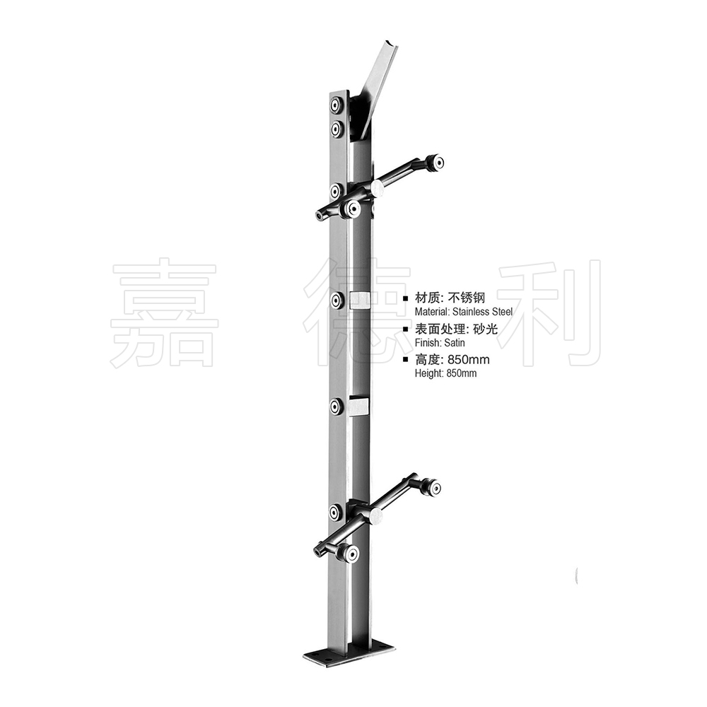 材质多为不锈钢201,304,316广泛应用于楼梯,栏杆,扶栏,扶手的支撑柱,表面一般是磨砂拉丝,或镀金处理。立柱主体板材一般选用6-15MM厚,市场上规格多为高度为850*50MM或1050*50MM,加上玻璃抓手等配件。立柱主体是靠精准切割设备切割出来的,可以切割出各种形状,再钣金加工,玻璃驳接紧固件大都是铸造出来的。