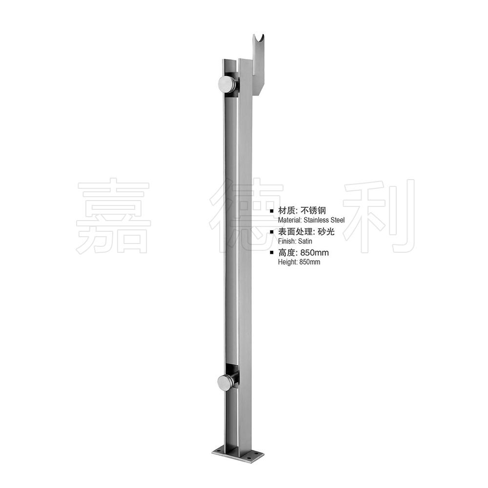 材质多为不锈钢201,304,316广泛应用于楼梯,栏杆,扶栏,扶手的支撑柱,表面一般是磨砂拉丝,或镀金处理。立柱主体板材一般选用6-15MM厚,市场上规格多为高度为850*50MM或1050*50MM,加上玻璃抓手等配件。立柱主体是靠精准切割设备切割出来的,可以切割出各种形状,再钣金加工,玻璃驳接紧固件大都是铸造出来的。