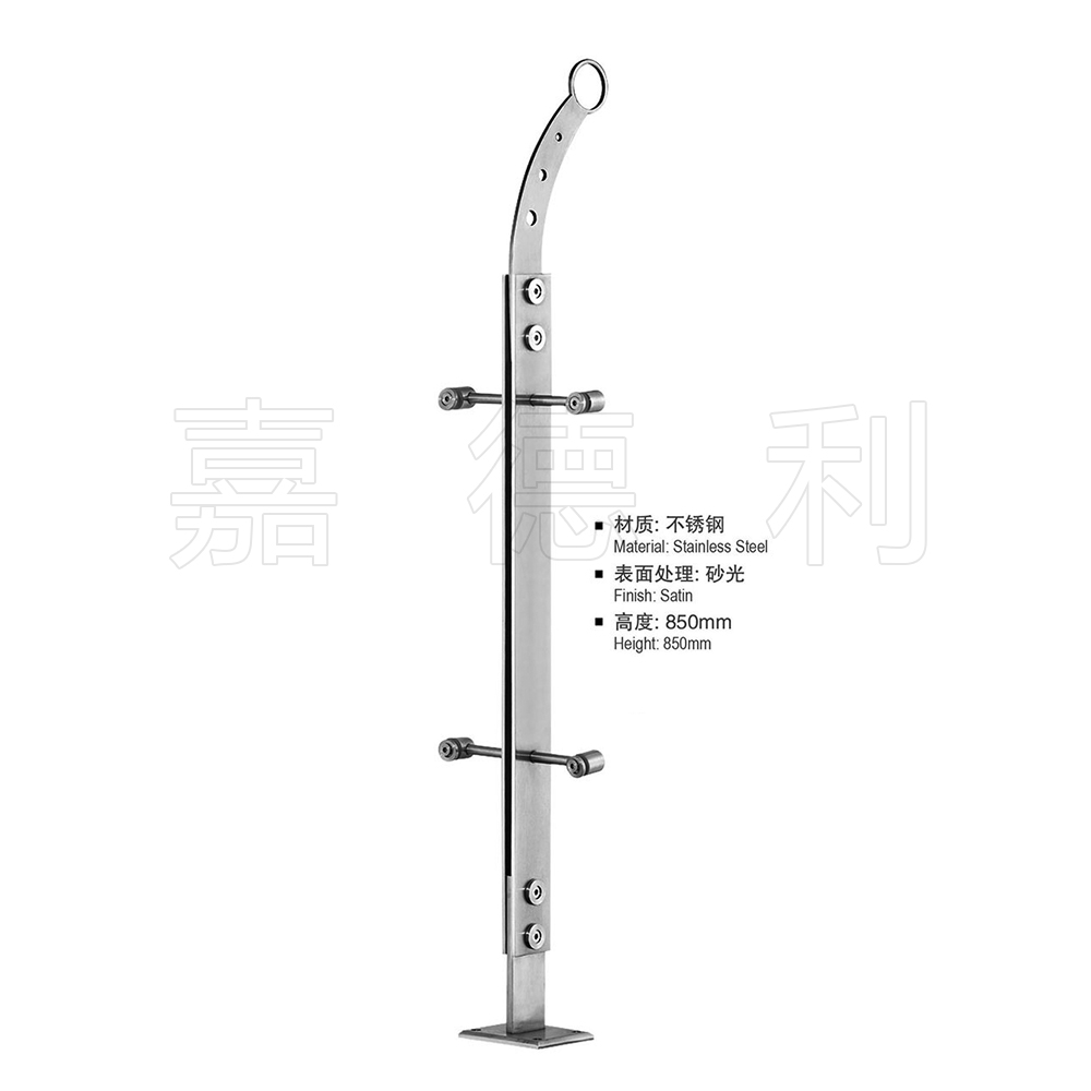 材质多为不锈钢201,304,316广泛应用于楼梯,栏杆,扶栏,扶手的支撑柱,表面一般是磨砂拉丝,或镀金处理。立柱主体板材一般选用6-15MM厚,市场上规格多为高度为850*50MM或1050*50MM,加上玻璃抓手等配件。立柱主体是靠精准切割设备切割出来的,可以切割出各种形状,再钣金加工,玻璃驳接紧固件大都是铸造出来的。
